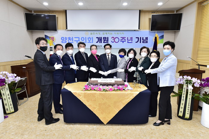 [시민일보 = 이대우 기자] 서울 양천구의회(의장 서병완)가 최근 양천구의회 1층 회의실에서 개원 30주년 기념식을 열고 기념수를 식재한 후 30주년 홍보영상물을 시청했다.
