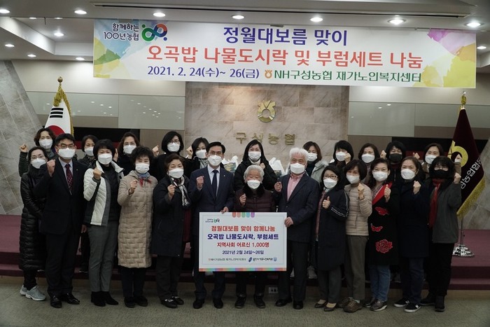용인시기흥노인복지관 임형규 관장은 “코로나19의 장기화로 모두가 어려운 상황 속에서 취약계층 어르신들을 위해 나눔과 봉사를 실천 해 주신 구성농협재가복지센터와 희망나눔봉사단에 깊은 감사드리며, 어르신들께서 정성스럽게 준비한 오곡밥과 나물, 부럼을 드시고 올 한해 건강하시길 바란다.” 고 밝혔다.