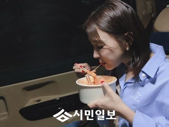 공개된 사진 속에는 차 안에서 밥을 먹고 있는 이지혜의 모습이 담겨있다.