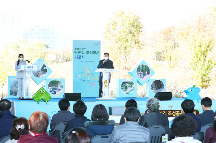 [시민일보 = 이대우 기자] 이황수 서울 송파구의회 의장이 최근 탄천 광평교 하부 쉼터에서 열린 송파둘레길 21㎞ 연결을 위한 ‘탄천길조성공사 기공식’에 참석했다.