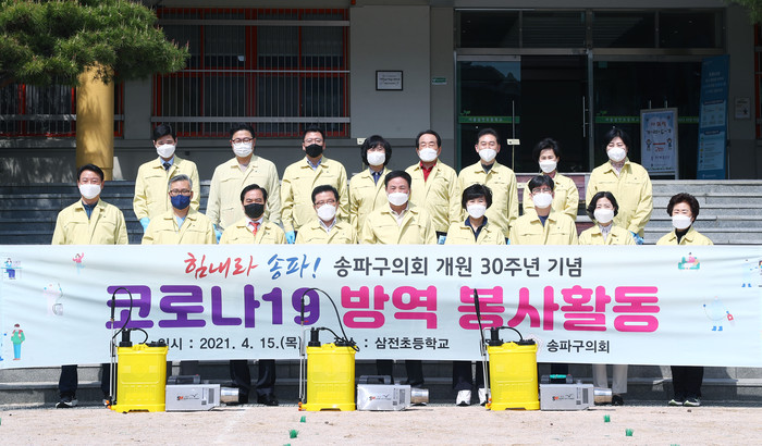 [시민일보 = 이대우 기자] 1991년 4월15일 개원 이래 올해로 30주년을 맞이한 서울 송파구의회(의장 이황수)가 최근 개원 30주년을 맞아 코로나19 방역 봉사활동을 펼쳤다.