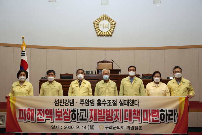 군의회는 성명서를 통해 “이번 집중 호우의 심각성을 인식하고 극심한 고통을 겪고 있는 구례군 주민들을 대표해 섬진강댐과 주암댐의 홍수조절 기능 실패에 따른 피해 대책 및 배상을 촉구한다”고 밝혔다.