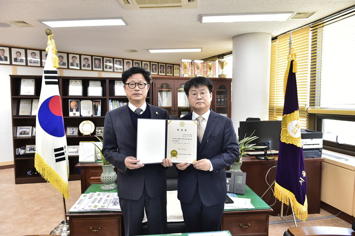 | ▲ 서병완 의장(왼쪽)이 입법고문으로 위촉된 서중희 변호사와 함께 기념촬영을 하고 있다. (사진제공=양천구의회) |