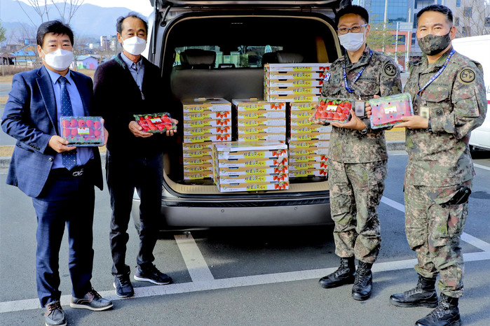 경남 합천군(군수 문준희)과 쌍책면 건태리(이장 진근구)는 11월 27일(금), 지난 8월 수해·태풍피해 대민지원 복구에 최선을 다했던 육군 제39보병사단 장병들을 찾아 딸기 160박스를 전달하고 감사의 마음을 전했다.