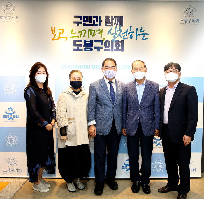 | ▲ 박진식 의장(가운데)이 도봉문화원 관계자들과 기념촬영을 하고 있다. (사진제공=도봉구의회) |