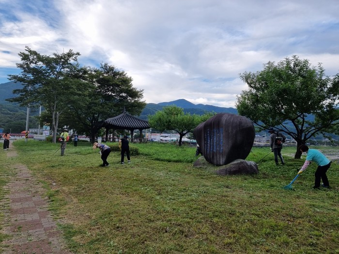 산청군 시천면 주민자치위원회(위원장 김영수) 위원들이 무더운 날씨에도 환경정화활동에 나서 귀감을 얻고 있다.