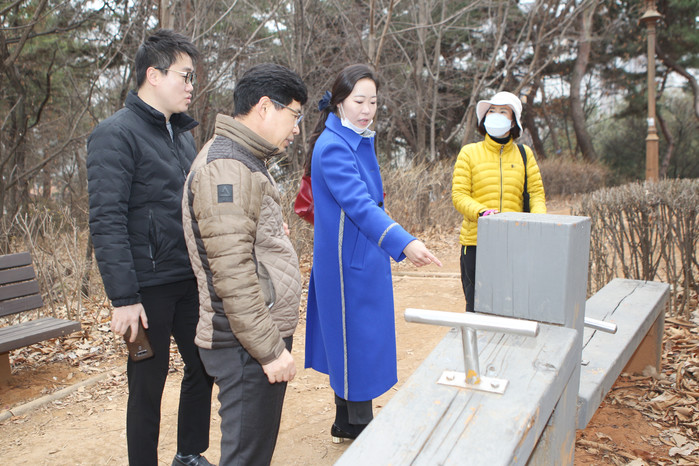 이에 진 의원은 공원 이용객 편의증진을 위해 고덕그라시움 입주민을 비롯해 구청 공원관리 부서인 푸른도시과 공원기획팀장 등과 함께 아파트 주변 공원을 방문해 실제적인 공원 상황을 점검했다.