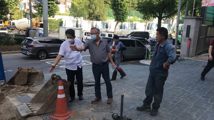 | ▲ 공사현장을 점검하고 있는 정재호 의원. (사진제공=종로구의회) |