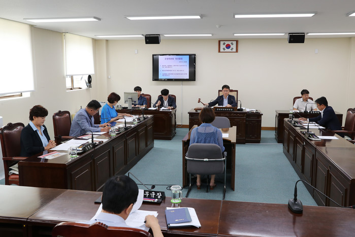 ▲ 최근 열린 운영위원회에서 최치효 위원장 및 의원들이 상정된 안건을 처리하고 있다. (사진제공=강북구의회) |
