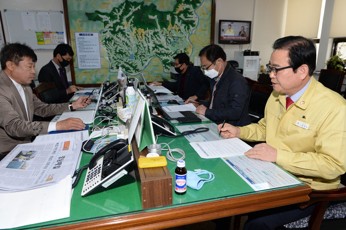 한정우 군수는 “2미터 정도의 거리두기, 흐르는 물에 30초 이상 비누로 손씻기, 기침예절 등 기본예방수칙 준수와 스스로의 격리, 사회적 거리두기 실천에 지속적으로 동참해 주시기를 부탁드린다”고 밝혔다.