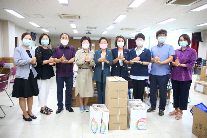 먼저, 복지건설위원들은 장기화되고 있는 코로나19의 지역사회 확산방지를 위해 고군분투하고 있는 보건소 직원들에게 감사 인사와 함께 준비해 온 격려품을 전달했다.