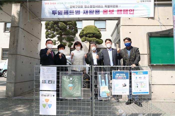 [시민일보 = 홍덕표 기자] 서울 강북구의회(의장 이용균)는 최근 구의회 청소행정서비스 특별위원회가 투명페트병 재활용 활성화를 위한 홍보캠페인을 전개했다고 30일 밝혔다.
