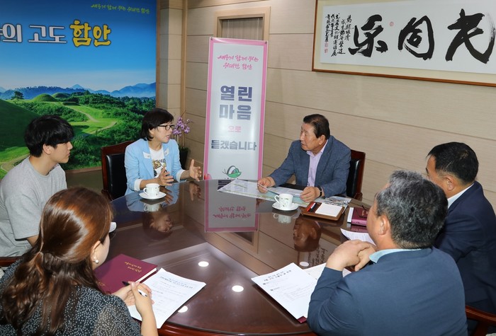 [함안=최성일 기자]함안군은 지난 28일 오후 2시 군수실에서 군민들의 생생한 현장의 소리를 듣기 위한 ‘8월 군민 소통의 날’을 운영했다.