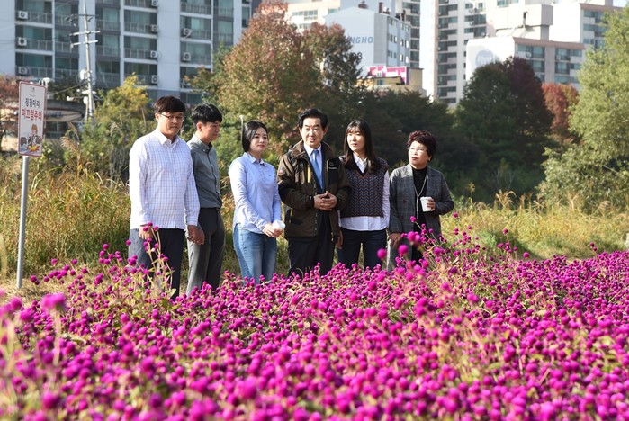 이어 안 시장은 지난 10월29일 장암동 76-4번지(호암교 북부)를 방문해 '중랑천 생태하천 환경개선사업' 현황을 점검하고 참석한 지역주민들의 다양한 의견을 수렴하며, 4계절 내내 다양한 꽃이 가꿔진 아름다운 하천을 만들어 나가겠다고 밝혔다.