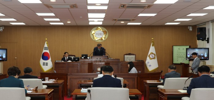정인균 의장은 개회사에서 동료 의원들에게 "상정된 모든 안건에 대하여 심도 있게 심사해 달라"면서 "집행부에서는 추진 중인 사업들이 차질 없이 진행될 수 있도록 의회와 지속적으로 협조해달라"고 당부했다. 또한 집행부에 태풍 링링의 피해를 철저히 점검해 신속하게 조치해줄 것을 강조했다.