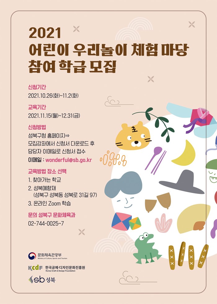 아울러 교육은 신청한 각 학교 또는 '성북예향재' 등 참여자가 선택한 장소에서 진행되며, 비대면 온라인 교육으로도 참여할 수 있다.