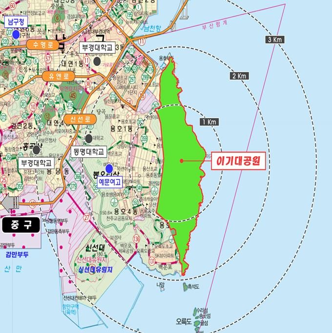 현재 이기대공원 전체면적 약 200만㎡ 중 정상부가 속한 약 75만㎡는 예산 부족 등의 이유로 매수가 어려워 내달 1일, 공원일몰제가 도래하면 도시계획시설이 실효되면서 일대 난개발과 환경 훼손이 우려되는 실정이다.