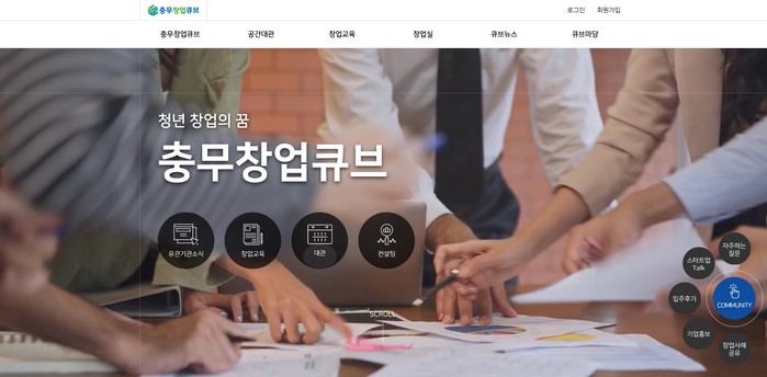 | ▲ 충무창업큐브 공식 홈페이지 이미지. |