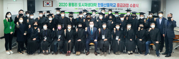 경남 함양군은 12일 함양군 기관단체청사 회의실에서 지역주민 30여명이 참석한 가운데‘2020 용평리 도시재생대학 한들산들학교 중급과정’수료식을 개최했다.