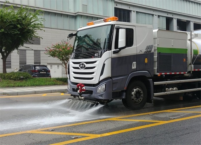| ▲ 주요간선도로에 물뿌리기 작업을 시행하는 모습. (사진제공=종로구청) |