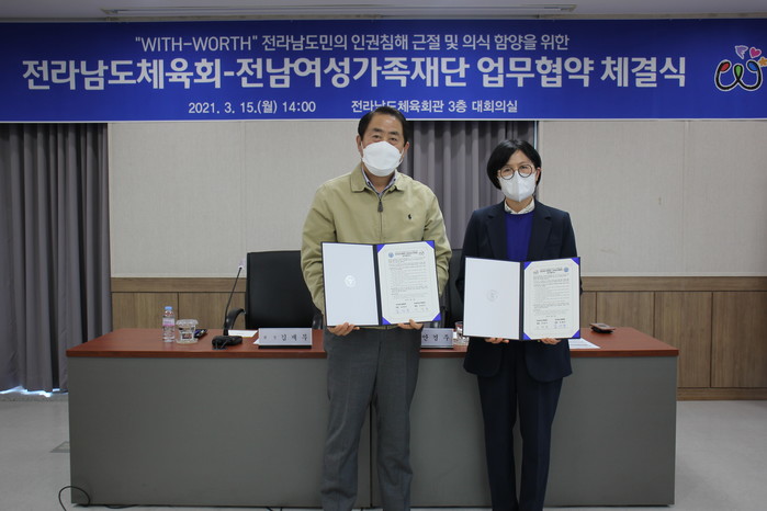 이번 업무협약을 통해 전남체육회와 전남여성가족재단은 최근 발생하고 있는 각종 스포츠 (성)폭력 및 스포츠인권침해 등을 근절하고, 체육 분야의 인권침해 근절 정책 수립을 위한 공동 연구, 각종 교육 및 홍보활동을 통해 건강한 전남체육 환경을 만들어나기기 위해 힘을 모으기로 했다.