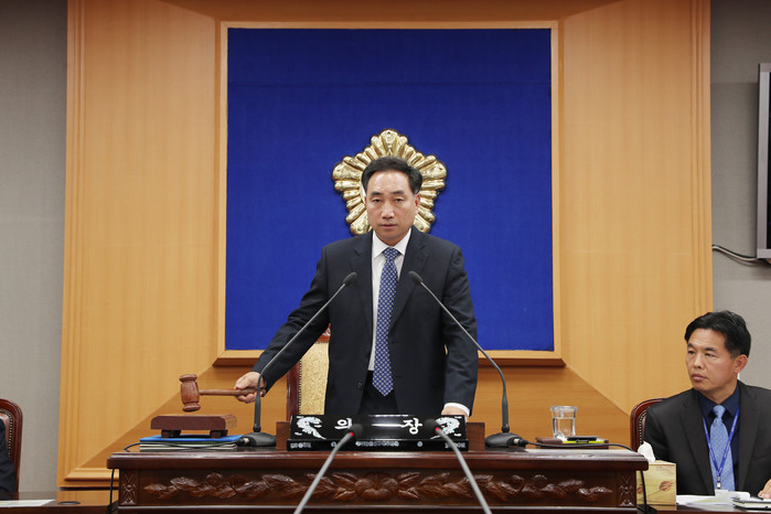 ▲ 이백균 의장이 제229회 임시회 개회를 선언하고 있다. (사진제공=강북구의회) |