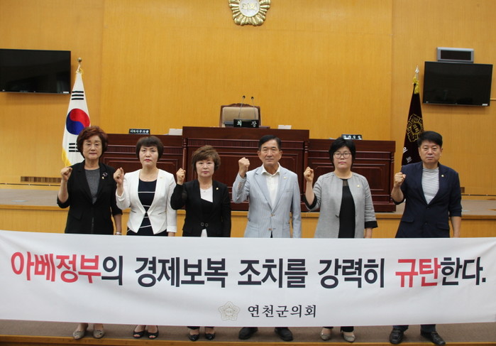 [연천=조영환 기자] 경기 연천군의회는 20일 군의회 본회의장에서 일본 아베 정부의 경제보복 조치 철회를 촉구하는 성명서를 발표했다.