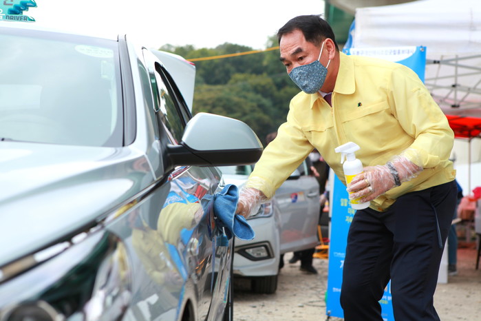 복지북부충전소(의정부시 평화로 75)에서 진행된 이날 행사에는 구의회를 대표해 박진식 의장과 강신만 부의장이 참석했으며, 직접 차량 내외부 방역소독을 실시하고 개인택시조합 관계자들과 코로나19로 인한 택시산업의 어려움 등을 청취하는 시간을 가졌다.