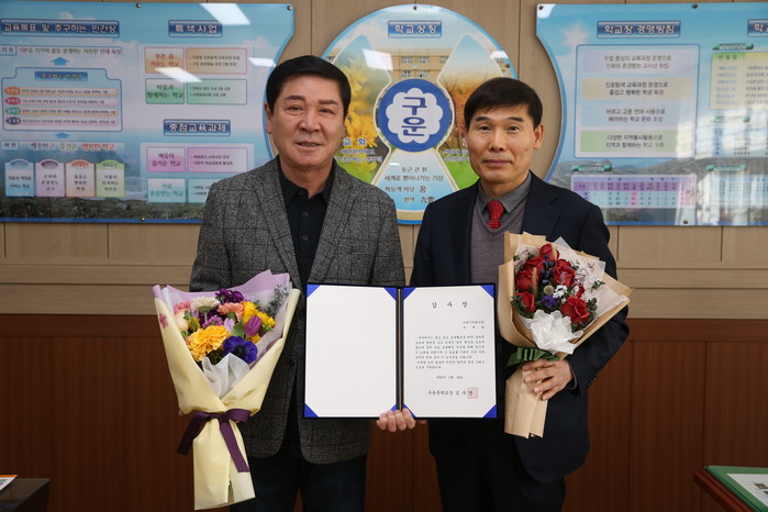 구운중학교는 평소 유 의원이 지역 학부모들과의 소통을 통해 모아진 의견과 건의사항 등을 학교에 전달하고 예산을 확보하는 등 교육의 질적 향상을 도모하기 위해 헌신적인 노력을 한 공로를 인정해 감사장을 전달했다.