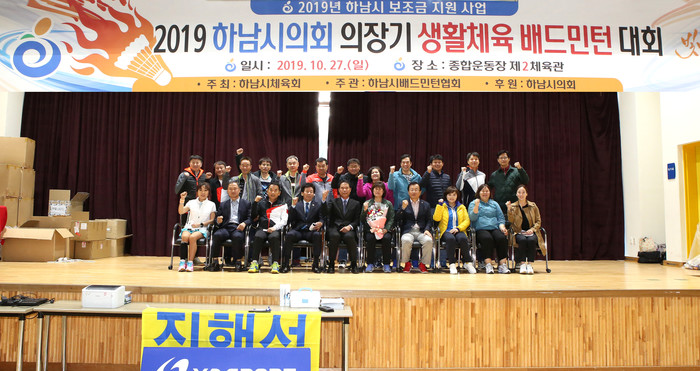 [하남=전용원 기자] 경기 하남시의회는 '2019 하남시의회 의장기 생활체육 배드민턴대회'가 지난 27일 하남종합운동장 제2체육관에서 선수단과 동호인 등 500여명이 참석한 가운데 성황리에 치러졌다고 밝혔다.