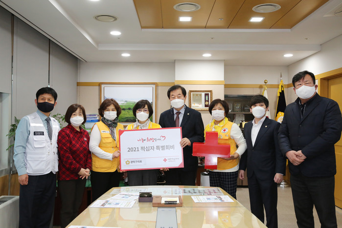 [시민일보 = 여영준 기자] 서울 관악구의회(의장 길용환)가 최근 구의회 의장실에서 2021년도 적십자 특별회비를 대한적십자사 서울지사에 전달했다.