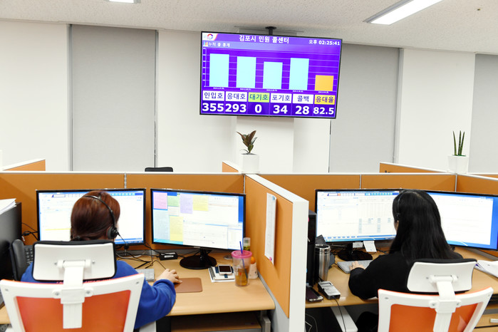 | ▲ 김포시 민원 콜센터 상담원들이 전화응대하고 있다. (사진제공=김포시청) |
