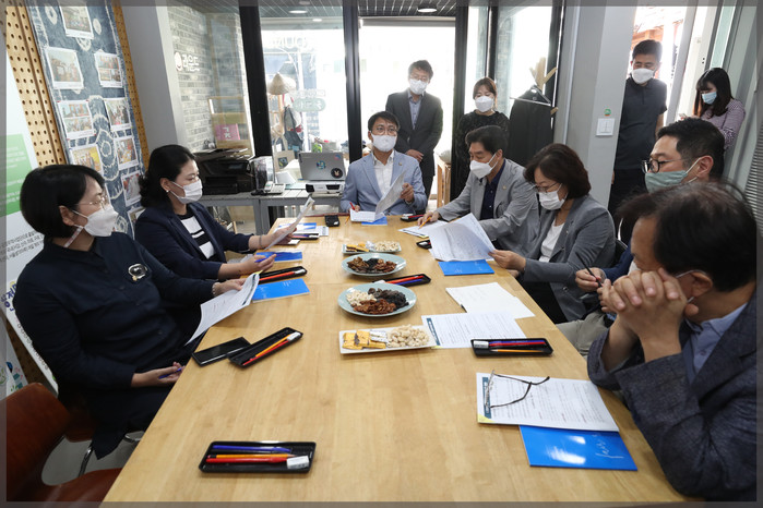 이어 오는 10월 제278회 임시회에 상정 예정인 '성북구 공정무역센터 민간위탁 구의회 동의안'에 대한 심도 있는 논의를 위해 구청 및 위탁업체 관계자로부터 운영 중인 홍보·교육 프로그램의 주민 만족도와 운영 실적 개선 사항 등에 대해 청취했다.