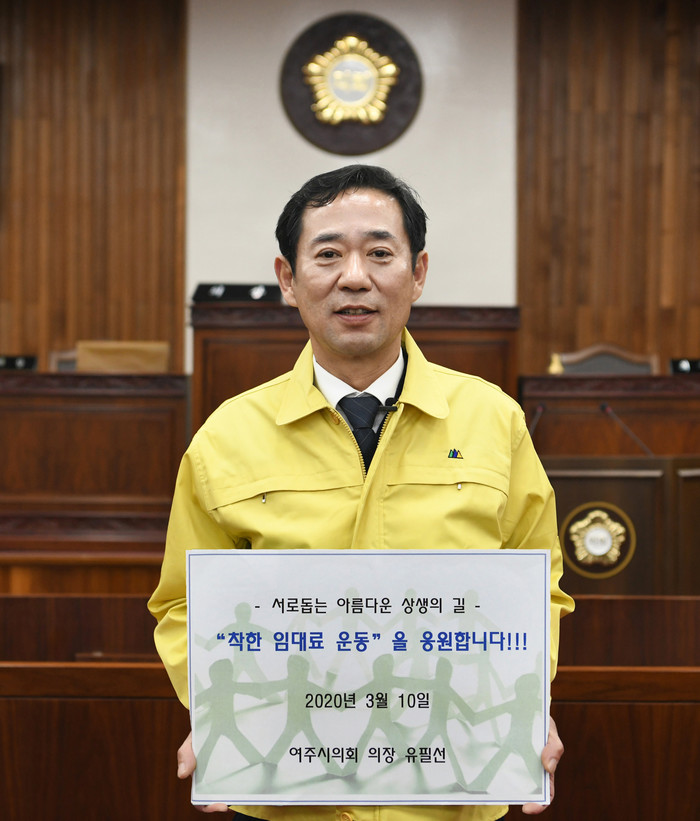 [여주=박근출 기자] 경기 여주시의회 유필선 의장은 최근 ‘착한 임대료를 응원합니다’ 릴레이 캠페인에 동참했다.