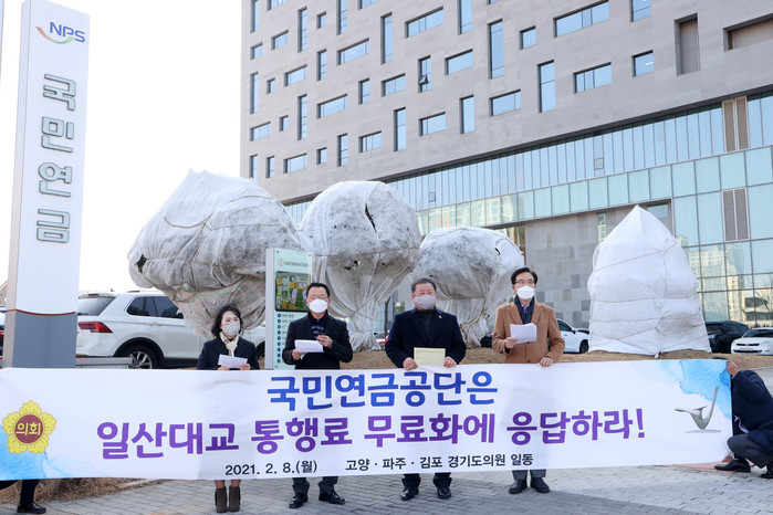 [수원=채종수 기자] 경기도의회 의원 4명(고양·김포·파주 지역 대표)이 최근 전주에 있는 국민연금공단 본사를 방문해 성명을 발표하고, 경기도 서북부 200만 시민에게 과도한 부담을 지우고 있는 일산대교 통행료의 무료화 논의에 국민연금공단이 적극 나서줄 것을 촉구했다.