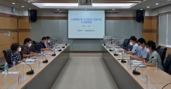 함안군은 지난 7월 30일 함안면에 있는 국립원예특작과학원 시설원예연구소(소장 이충근)에서 올해 협력사업 3개 과제에 대한 중간점검과 2022년도 협력사업 방향과 현장 실증과제에 대한 추진협의회를 개최했다.