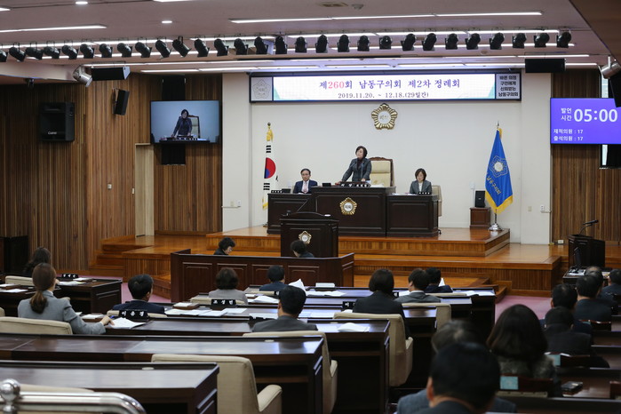 [인천=문찬식 기자] 인천 남동구의회는 9일 제260회 제2차 정례회 제2차 본회의를 열어 2020년 예산안 제안설명과 조례안 등 총 20건의 안건을 처리했다.