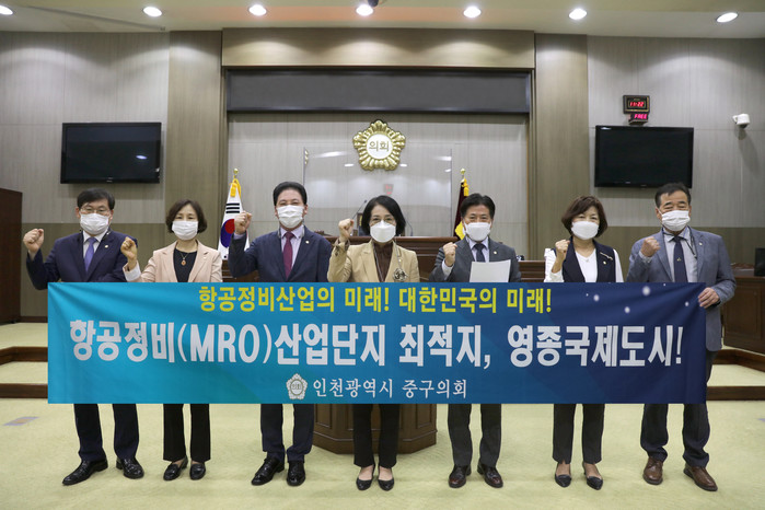 [인천=문찬식 기자] 인천 중구의회가 최근 본회의장에서 ‘영종국제도시에 항공정비(MRO) 산업단지 조성을 위한 관련법 개정’을 촉구하는 성명서를 발표했다.