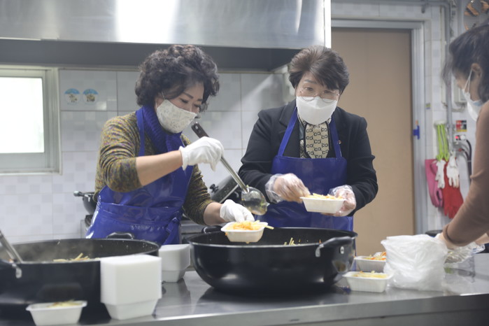 이날 행사에 참여한 김성해 의장과 최숙경 부의장은 코로나19 확산으로 인해 무료급식을 이용하지 못하는 노인 90명의 가정에 배달될 밑반찬 만들기와 식자재 포장 등에 동참하며 따뜻한 이웃사랑 실천에 함께했다.