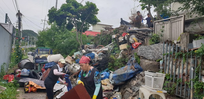 경기 남양주시 화도읍 지역사회보장협의체는 19일까지 저소득 노인 가구의 주거환경 개선을 위한 청소와 집수리 봉사를 실시했다. 협의체 위원들은 10톤 이상의 쓰레기를 수거하고 도배 등을 했다. 사진은 쓰레기를 수거하고 있는 모습. (사진제공=남양주시청)