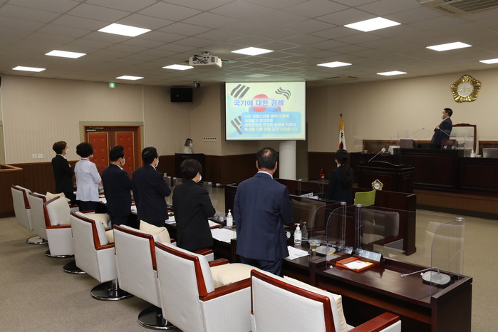 구의회는 코로나19 확산을 예방하기 위해 이번 회기를 앞두고 본회의장과 위원회실에 비말 방지 투명 가림막을 설치하고, 본회의에서는 실·국장급 이상만 출석하도록 제한해 눈길을 끌었다.