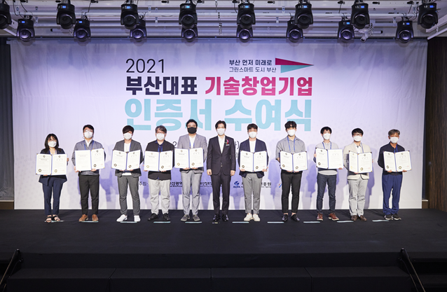 | ▲ < 2021 부산대표 기술창업기업 인증서 수여식 > |