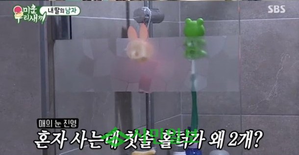 이후 홍진영은 화장실까지 들어갔다. 홍진영은 화장실을 갔다가 혼자 사는데도 불구, 칫솔 홀더가 두 개인 것에 주목했다. 이에 허경환은 "외로워서 두 개 붙였다"고 해명했지만 홍진영은 이를 믿지 못했다.