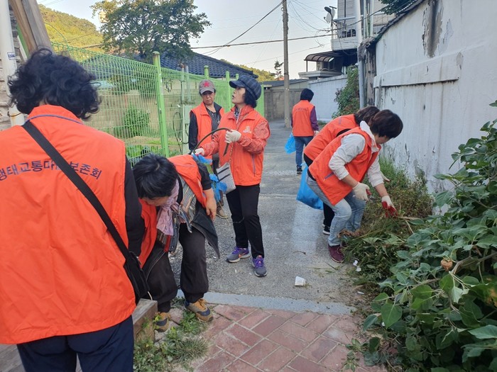 경기 수원시 팔달구 행궁동 '행궁마을가꾸미' 회원들은 지난 12일 남창동 한데우물 뒷골목을 정비했다. 행궁마을가꾸미는 행궁동 주민자치회의 생태교통보존분과위원회를 중심으로 주민 20여명이 모여 ‘마을 정원과 화단을 주민들이 직접 가꾸자’는 취지로 시작된 봉사회다. 사진은 회원들이 풀과 잡초를 뽑고, 주변 쓰레기를 수거하고 있는 모습. (사진제공=팔달구청)