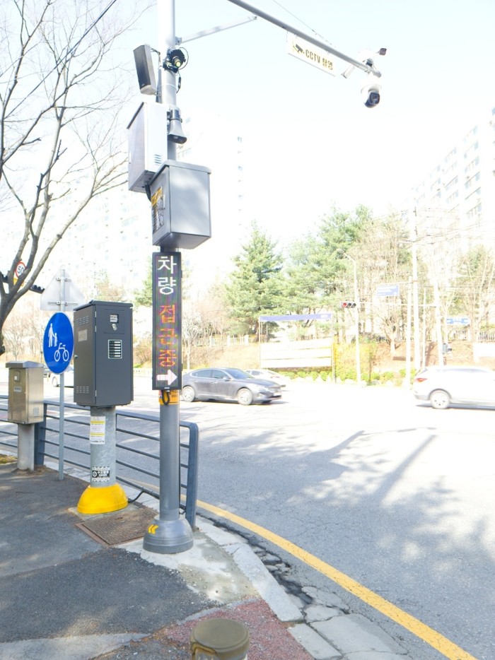 이 시스템은 인공지능을 활용해 사람이나 차량의 움직임을 감지한다. 교차로 사각지대에 위치한 보행자에겐 차량의 접근을, 운전자에게는 보행자가 있음을 전광판과 스피커를 활용해 알려준다.
