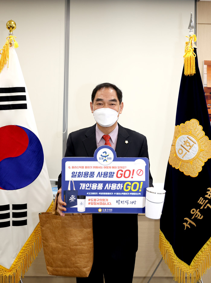 [시민일보 = 여영준 기자] 박진식 서울 도봉구의장이 최근 생활 속 일회용품 및 플라스틱을 줄이는 탈플라스틱 실천 운동인 '고고(GOGO)챌린지'에 동참했다.