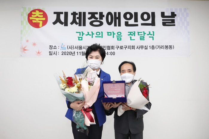 이종웅 지체장애인협회 구로지회장은 이날 조 의원에게 감사패를 전달하며 “그동안 장애인과 어르신, 청소년 등 사회적 약자를 위한 정책지원에 앞장서며 장애인 인권과 복지향상을 위해 노력해 주셔서 감사하다”고 전했다.