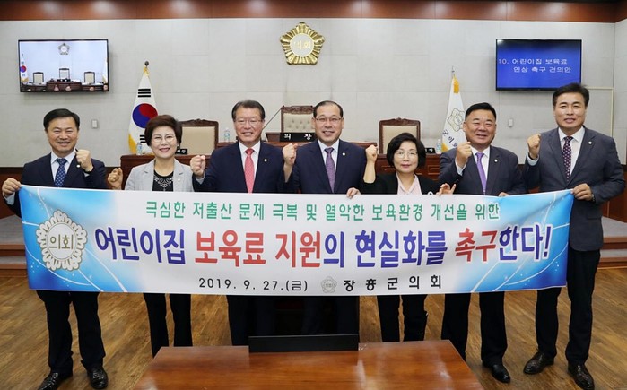 군의회는 "이에 따라 국가 차원의 현실적인 보육료 지원이 반드시 필요하다"며 보건복지부가 표준보육비용 이상의 보육료 지원, 어린이집 급식비 현실화, 민간·가정 보육시설 인건비 별도 책정으로 전문성 있는 보육교사 확보 여건을 조성토록 촉구했다.