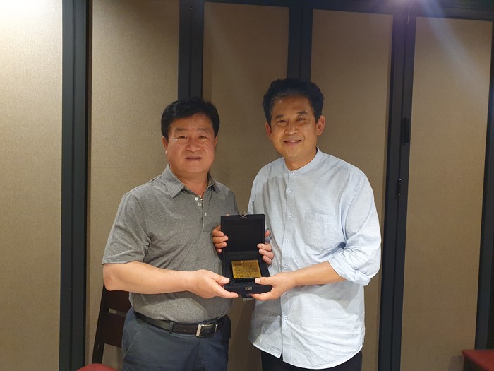 | ▲ 정재호 의원(오른쪽)이 감사패를 받고 기념촬영을 하고 있다. (사진제공=종로구의회) |