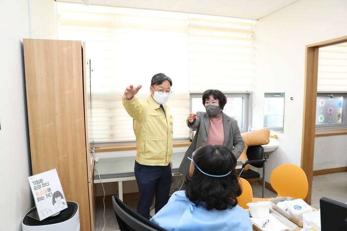 이날 이 의장은 구 보건소 지역보건과장의 안내로 보건소 1층에 마련된 예방접종실을 둘러보고 의료진과 관계자들에게 감사의 인사를 전했다.